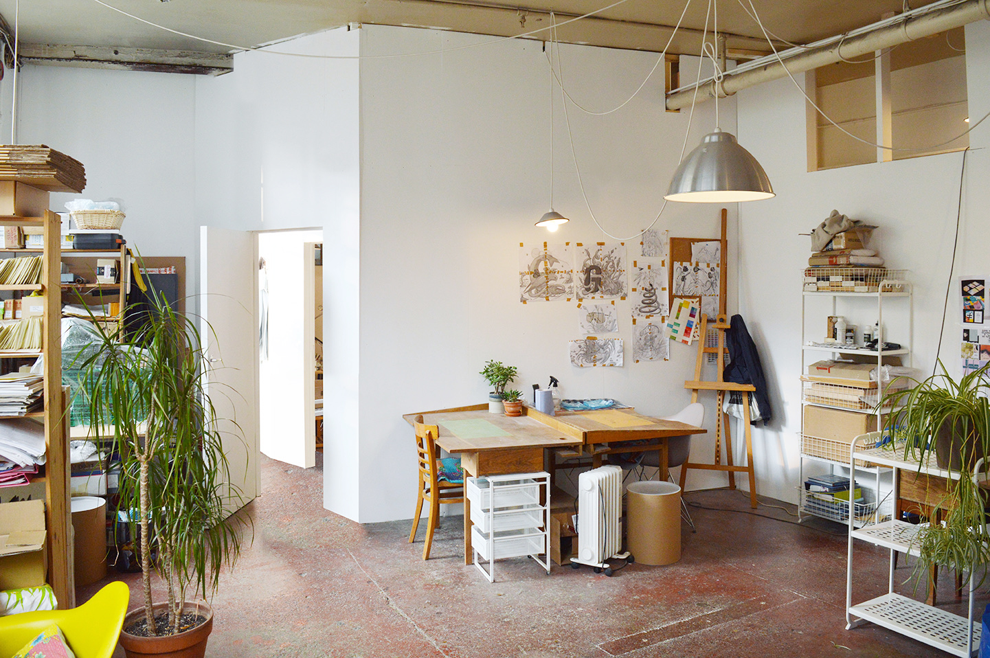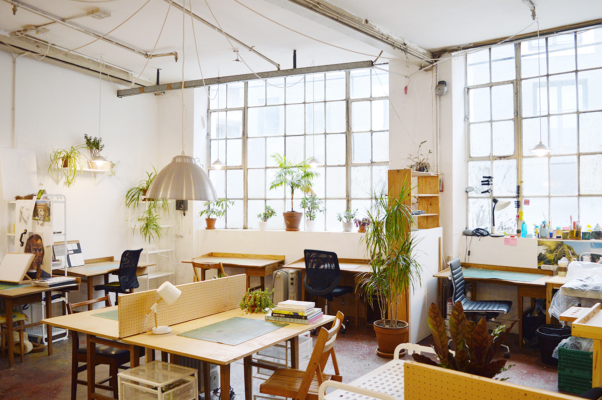 The shared studios contains 14 deskspaces in total, occupied by a range of artists, illustrators, designers and makers.